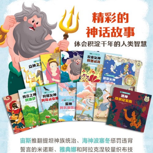 在希腊神话里,无能不能的神祇主宰着一切,每片森林、每条河流、每个湖泊都有相应的神在管理。在这些神祇里,最重要的就是以宙斯为代表的奥林匹斯十二主神。他们的故事奇幻又有趣: 《01 众神之王宙斯》:宙斯,奥林匹斯十二主神之首,众神之王。在希腊神话里,他比任何一位神都更厉害,在天的最高处统治着整个世界。不过你知道吗?他并不是打从生下来就是世界的主宰哦。他是怎么登上最高主神宝座的呢? 《02 天后赫拉》:赫拉,宙斯的妻子,奥林匹斯至高无上的天后。这一天,赫拉发现宙斯偷偷和美丽的伊娥相会,于是派出了一个长着100只眼睛的怪物去看守伊娥,结果怎么样了呢? 《03 海神波塞冬》:波塞冬,大海之神。他是宙斯的兄弟,拥有不亚于宙斯的力量,他的三叉戟可以随意操纵海浪和风暴,他的性格如同大海的惊涛骇浪一般令人生畏。如果违背了和他的约定,后果会是怎样的呢? 《04 农业女神得墨忒耳》:得墨忒耳,农业女神。她能让土地肥沃、五谷丰登,为人们带来无尽的福泽。但有一天,她却丢下了自己的职责,导致大地干涸,草、树木和谷物也都因干枯而死去。原来是她的女儿普西芬尼失踪了,怎么也找不到。到底发生了什么事,她能找回女儿吗? 《05 智慧女神雅典娜》:雅典娜,智慧女神、战争女神,她从宙斯的头颅中诞生,一出生就穿着闪亮的盔甲。她虽然是战争女神,却更加向往和平,在保护人类的战争中,她会抗争到底。她和雅典这座城市有着很深的渊源,你知道是怎么回事吗? 《06 战神阿瑞斯》:阿瑞斯,战争和暴乱之神。和战争女神雅典娜不同,他生性残忍,在战争中只追求胜利,从来不关心战争正义与否。阿瑞斯和雅典娜的关系并不好,当他们面对面厮杀,你猜谁会获得胜利呢? 《07 预言之神阿波罗》:阿波罗,预言之神、音乐之神、弓箭之神、医药之神。阿波罗很擅长演奏里拉琴,所有人都认为他的琴声是世界上最美丽的声音。但是萨蒂尔马斯亚斯很不服气,他向阿波罗发起了挑战。他们俩谁会赢呢? 《08 狩猎女神阿耳忒弥斯》:阿耳忒弥斯,狩猎女神。她是阿波罗的双胞胎姐姐,最喜欢的事情就是在森林里打猎。她对追随自己的人很好,但是如果有人胆敢冒犯她,就会遭到可怕的惩罚。这一天,巨人双胞胎兄弟阿洛代伊对阿耳忒弥斯出言不逊,他们的下场会如何? 《09 爱神阿芙洛狄忒》:阿芙洛狄忒,爱与美的女神,是所有奥林匹斯女神中最美丽的一位。传说她诞生在大海的泡沐中,她的金腰带可以让所有人爱上她。但是一天,她被小爱神厄洛斯的爱情之箭射中了,会发生什么事呢? 《10 众神使者赫耳墨斯》:赫耳墨斯,众神使者,是奥林匹斯十二主神中最忙碌的一位。他拥有带翅膀的翼帽、插翼飞鞋和商神权杖,是所有神祇中跑得最快的。你知道他这套炫酷的飞行装备是怎么来的吗? 《11 工匠之神赫菲斯托斯》:赫菲斯托斯,工匠之神、火神。他长相丑陋,还是个跛脚,小时候甚至遭到母亲赫拉的嫌弃。但凭借高超的锻造技艺,他成为了奥林匹斯十二主神之一,受到了众神的珍视和感谢。赫菲斯托斯制造出了很多神奇的东西,你知道有哪些吗? 《12 酒神狄俄尼索斯》:狄俄尼索斯,葡萄酒之神。他到处游历,教给人们栽种葡萄和酿造葡萄酒的方法,有他在的地方就会充满欢乐。但是狄俄尼索斯的出生相当离奇,因为他竟然出生了两次!这到底是怎么回事呢? 读完别走开!还有众神谱系图帮助孩子们理清人物关系、把握神话脉络。丰富的知识拓展,历史、文学、艺术、科学、社会、自然、地理……不知不觉,见识又增加了!