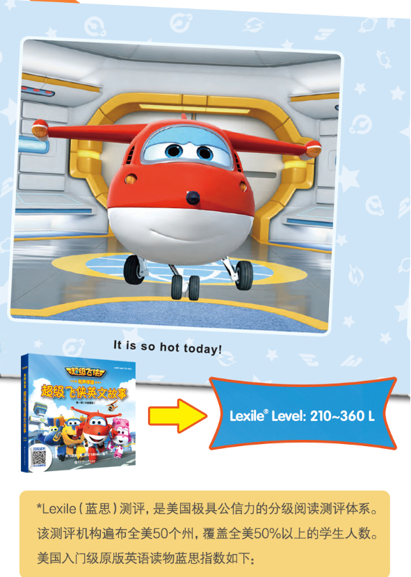 美国Lexile®专业测评,蓝思指数210~360L,英文词汇180~250个,与美国入门级儿童绘本难易度相当,让孩子与美国儿童同步阅读!