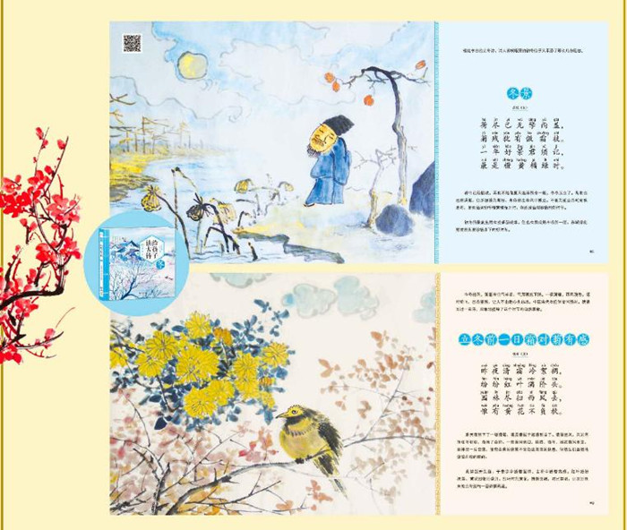 《给孩子读古诗》以适合孩子阅读的精美绘本形式,以二十四节气贯穿好诗词,一首古诗,一幅古画,将与每个节气有关的经典诗词贯穿起来,以唯美清新的笔触,将诗、情、画、意完美地结合在一起,让孩子每一个节气都诗意盎然,是我们送给孩子的一份心灵厚礼。同时,我们还配有音频,将文字、声音、画面融为一体,在诗教的传承中,带领孩子们领略中国古典文化的精髓。