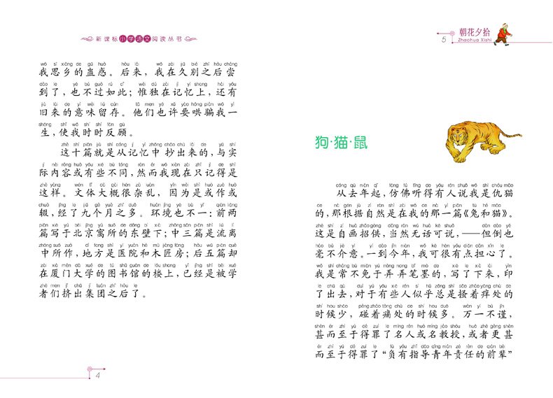 二十一世纪出版社出版的“新课标小学语文阅读丛书(彩绘注音版)”《朝花夕拾》不仅收录了鲁迅先生的散文集《朝花夕拾》,还精选了散文诗集《野草》、小说集《呐喊》里的部分经典篇目,同时,为方便阅读还配以拼音和精美插图,是一道专为小学生读者们准备的课外阅读大餐。小朋友们要想从小跟书交朋友,多读书,读好书,就从这本鲁迅先生的《朝花夕拾》开始吧,本书将成为你攀登这一人生目标的阶梯。