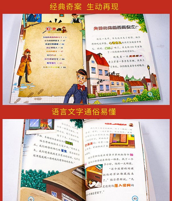 《神探福尔摩斯》是一套专门为7~12岁青少年量身打造的侦探小说,全书共10册,他是英国著名侦探小说家阿瑟·柯南·道尔创作的小说集,也是世界文坛中脍炙人口的探案佳作,距今已有百年历史,它开启了侦探小说历史的黄金时代,先后被译成57种语言出版,风靡全球,畅销世界各地,备受读者的推崇和喜爱,是侦探推理小说中的经典之作。《福尔摩斯探案集》被广大探案迷誉为推理小说中的“圣经”,在漫长的时间洗礼中,福尔摩斯已经成为了人们心中神探的代名词。……