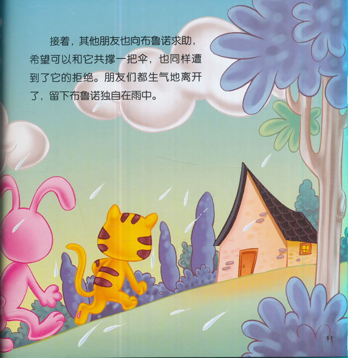 《布鲁诺的彩虹伞》以喜欢下雨的布鲁诺与朋友之间游玩的时候遇到下雨天,朋友们希望和布鲁诺一起打伞,但是布鲁诺没有帮助朋友们,他不愿意和朋友分享。朋友们都不愿意和布鲁诺一起玩。回家后布鲁诺认真反思了自己的错误,后来朋友们都来找他玩了。本书根据不同的角色,赋予不同的性格和行为方式,语言精练有趣,画面感极强,非常容易让小朋友产生代入感,从中获得启示教育。寓教于乐,纠正孩子坏行为,培养高智商、高情商的好宝宝。为迎合孩子们注意力集中时间短的特点,每个故事语言简洁、情节完整,有极强的代入性,家长们可以将本书作为宝宝睡前读本,每天阅读几个小故事,潜移默化,帮助孩子健康成长。