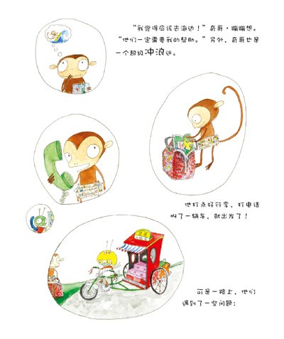 门罗轻松活泼而细节丰富的插图,与她富于激情和活力的故事非常匹配。她为充满好奇心的小小修理匠们带来了内容详尽的趣味享受。——《科克斯评论》杂志评《奇哥·蹦蹦和海边捣蛋鬼》