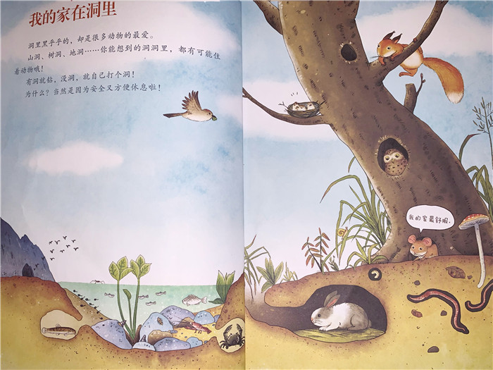 每个人都有家,动物也不例外。蜘蛛的家在网上,蜗牛的家在背上,寄居蟹的家在海螺里……我们一起去动物家里做客吧!