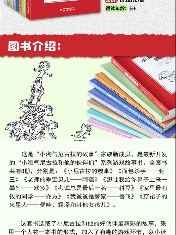 只要看到那个提着小书包、戴着红领带、快乐奔跑的小男孩儿形象,你就再也忘不了他;只要读了“小淘气尼古拉的故事”,笑容就会挂上你的嘴角,小淘气尼古拉和他的小伙伴就会成为你一生的朋友!