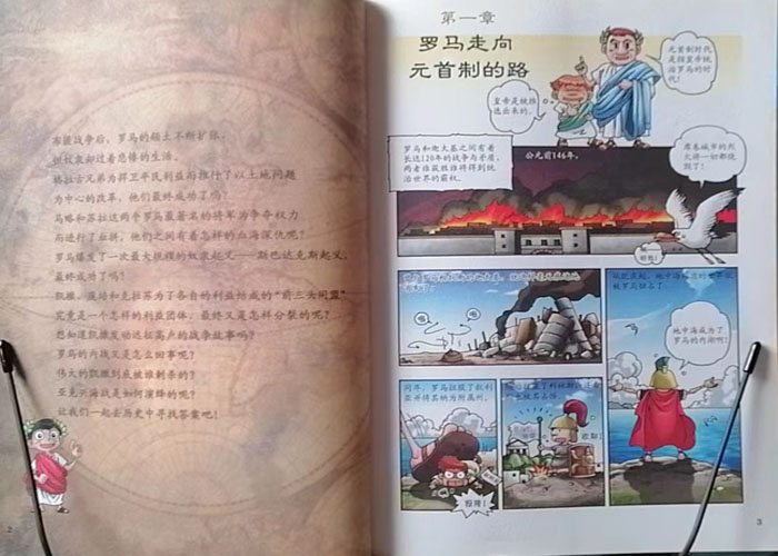 本书为漫画类少儿读物,主要是讲布匿战争后古罗马繁荣与渐衰的历史,包括著名的格拉古兄弟改革、马略与苏拉的血拼、斯巴达克奴隶大起义、“前三头同盟”、高卢战争、凯撒遇刺、亚克兴角海战等著名历史事件与战争。在结构上,历史事件间过渡合理,漫画的幽默手法更增添了故事的趣味性,将古罗马帝国的繁荣景象、社会风俗、文明成就等展现在小读者眼前,让孩子在轻松的氛围中爱上世界史。