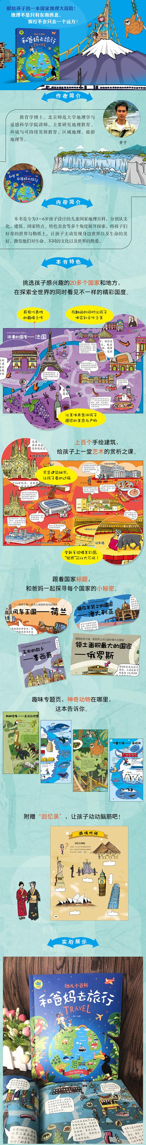 ※儿童教育专家为3-6岁孩子书写关于各个国家的知识内容。※手绘各个国家精美有趣的人文与地理,使孩子了解世界地理的基本概念和各个国家的特色。※充分考虑3-6岁孩子的地理认知与国家辨识度,选择好了解易明白、浅显有趣的编辑方式和绘画手法,将孩子的探索欲和好奇心的需求相融合,让孩子的想象力得到充分的发挥。※全彩的阅读体验培养孩子们对于颜色的理解,刺激视觉,充足的国家地理知识使孩子们的求知欲得到满足,培养孩子独立探索的能力,让孩子们在不同的国家中冒险。※让中国的孩子从小就认识世界,了解世界的广阔与其他国家的文化。