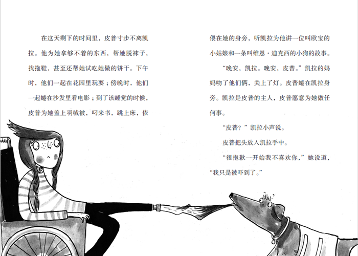 皮普是一只拉布拉多犬,在抵御诱惑的训练中,他战胜了诱人的香肠,却败给了会飞会跳的网球。他太爱球了,一个小小的网球总是能激起他的无限热情,而忘了自己的任务。直到有一天,他遇到凯拉——一个坐在轮椅上的寂寞女孩儿。皮普下定决心,一定要抵制住球的诱惑,尽快成为凯拉的助手。经过一番训练,他终于抵制住了网球的诱惑,但在实际演习时却被公园里的篮球吸引走了。而这也让凯拉认识了更多的朋友,并参与到他们的游戏中去。*后,皮普如愿成为凯拉在运动场上的协助犬,跟她一起享受球类运动的乐趣。