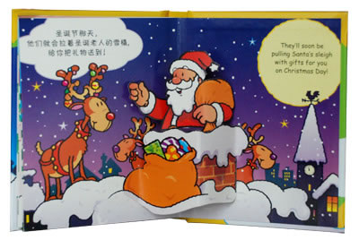 这些不同于平面书的立体设计会激发宝宝对书籍的浓厚兴趣,潜移默化培养他们对于阅读的喜爱,为孩子将来自然而然地接受更多书面化的知识打下良好基础。精巧的立体动态设计,丰富和谐的色彩画面,趣味的英语短句,小巧的开本和精致的礼盒包装,完美结合在这套《欢乐圣诞》里!