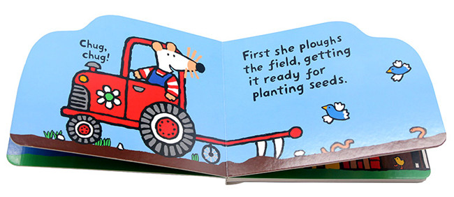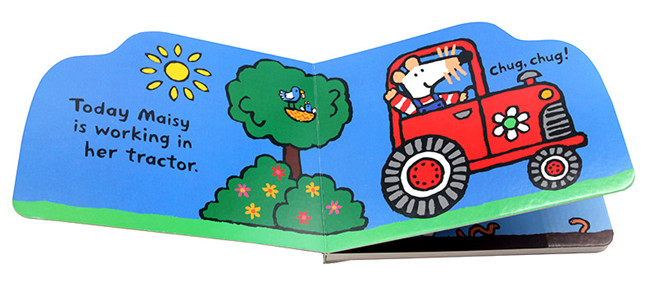 嘟--嘟--Maisy邀请牠的好朋友们搭乘火车一起到乡下游玩,火车经过了高山、也经过了原野,穿过了山洞也迎向了灿烂的阳光,这真是一个出游的好天气。Maisy是插画家Lucy Cousins笔下的一隻可爱的老鼠,天真活泼又懂事,她有几个好朋友包括了松鼠、鳄鱼以及小鸡。