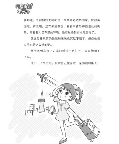 惜城、阿呆、兔子、咪咪这两对“同桌冤家”开始了一段去泰国的奇妙旅程。他们去了佛光之下的天使之城——曼谷,参观了金碧辉煌的大皇宫,欣赏了价值连城的精美玉佛,还看见了著名的有求必应四面佛;接着他们去了古朴的“北国玫瑰”——清迈,在那里,时间就像停滞了一样,他们去了鲜花掩映的古老寺庙,逛了神奇的夜间动物园和夜市,还去寻找了奇异的“长颈族”;最后他们去了海滩度假天堂——芭堤雅,看了人妖歌舞团表演,在美丽的沙滩上漫步,结束了他们在泰国的精彩旅行。