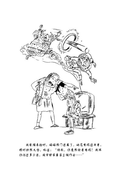 我抓起书包,冲进书房。妈妈数落爸爸:“孩子他爸,你这个‘教育部部长’是怎么管孩子的?竟然放任杨歌看电视!他功课那么紧张,哪有时间看电视?……”