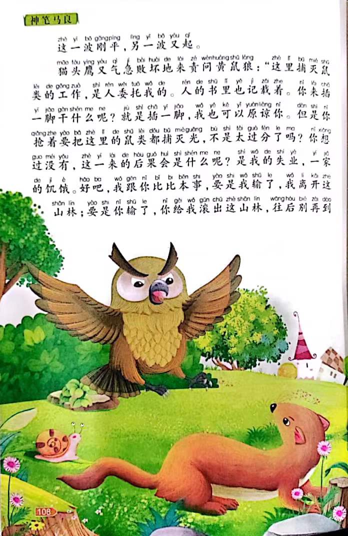 主人公马良是个勤劳、刻苦、有志气的孩子。他从小失去父母,家境贫寒,靠自己打柴、割草为生。但是,他并有因生活贫苦而气馁,一心想学画画的本领。他每天用心苦练,在沙地上学着描飞鸟,在岩石上学着描游鱼。晚上,拿了一块木炭,在窑洞的墙壁上,复习白天画过的画。后来,他终于得到了一支神笔。他用这支神笔画鸟,鸟就在天上飞;画鱼,鱼就在水中游。从此,马良用自己的本领自由自在地为穷苦的乡亲们画画,画出他们所需要的东西:犁耙、耕牛、水车、石磨……