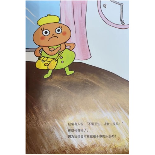 嘿,我是虱小妹!我是一种附着在头发里产卵,还不停地吸血弄得头皮痒痒的寄生虫。人们经常说不爱干净、不讲卫生就会被我盯上。但我悄悄告诉你,爱干净的人也会被我盯上哟。因为我可以通过直接接触、私人物品共用这些方式传染其他人。如果被传染的话,正常清洗头发是赶不走我的,只有专门的洗发水和药物才能把我消灭。想知道更多关于我的秘密吗?快来书里找我吧!