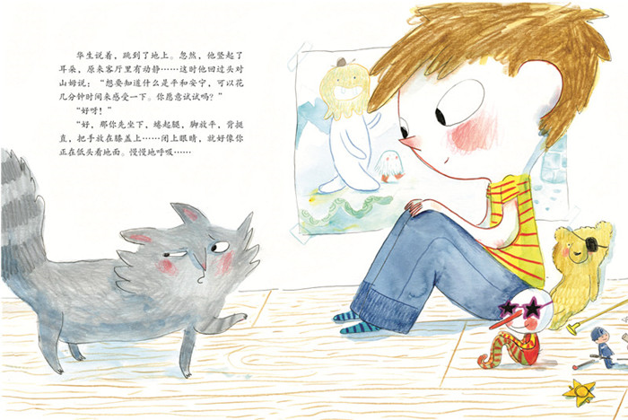 书中的两位主角:好奇的小男孩山姆和有智慧的猫咪华生,以生活化的对话方式和3岁 孩子谈心,用具体的故事举例,引导孩子识别自己的想法和感受,进而做出判断和行动,小孩也能思考、理解