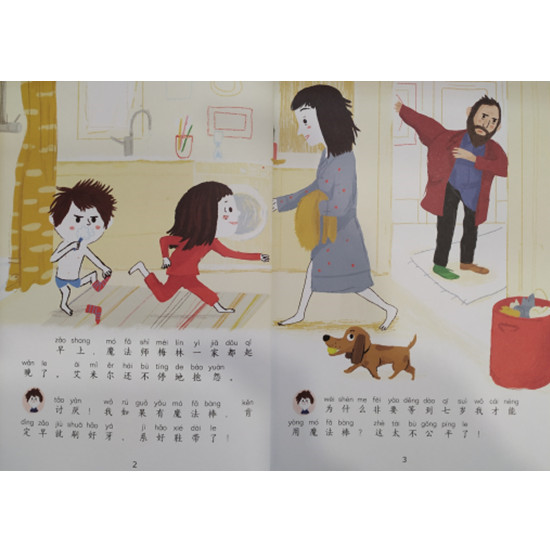 4.《爸爸的咒语失灵了》 ——解决问题:遇事不抱怨,积极面对。 “谢谢你,阿姨!”艾米尔对警察叔叔说,气坏了警察叔叔。这究竟是怎么回事呢?原来,今天早上,艾米尔一家都起晚了,眼看着要迟到了,艾米尔为此抱怨个不停。为了让艾米尔不再说那些没有礼貌的话,魔法师爸爸向艾米尔施了魔法咒语。然而,爸爸一定是搞错了什么,艾米尔只要一张口,说出的话就会把大家都吓一跳。这一切究竟是怎么回事?