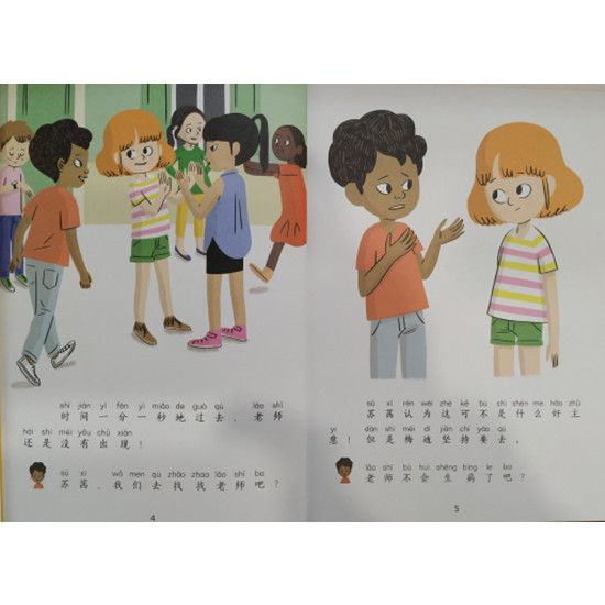 2.《老师今天不想上学》 ——换位思考:包容理解,发现优势。 今天是学校开学的日子!所有学生都在校门口等待新老师,可是新老师迟迟不来。苏茜和梅迪决定去老师家里找她。谁说只有孩子们会害怕开学?老师说不定也会害怕呢!