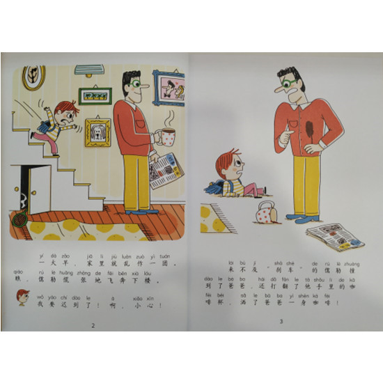 3.《谁的错?》 ——承担责任:犯了错误要敢于承担后果。 今天早晨,爸爸弄洒了手中的咖啡, 但这不是爸爸的错,因为是儒勒从楼梯上冲下来,撞到了他;但这也不是儒勒的错,是莉亚把他从楼梯上推了下来。可是这也不是莉亚的错,是小狗米路追赶小猫的时候撞到了她;但这也不是米路的错,因为是小猫偷吃了他的早饭……那么,这一切到底是谁的错呢?