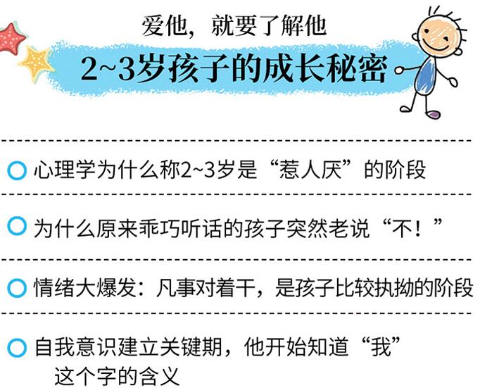 这是一本父母与2岁孩子交流最理想的实践指南,书中不仅囊括了父母育儿过程中经常遇到的各种情况,如与孩子交流,赞美孩子,斥责孩子,拒绝孩子,孩子打架、争宠、找麻烦、撒谎等等,更从孩子的角度看问题,帮助孩子排除负面情绪,带给与孩子相处的正向能量。