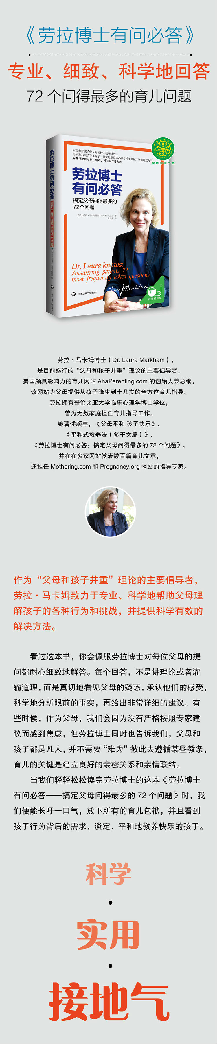 有时我们怀疑自己做得不够好,在拼命吸收育儿知识之余,还隐隐地感到愧疚。但是,看着劳拉博士的解答,感受却是如沐春风的,我们因此更了解孩子行为背后的原因,更懂孩子,也接受自己的某些困惑和焦虑。劳拉博士为千万父母解答的同时,也安慰了我们——她明白所有父母遭遇育儿挑战时的心情。在这本书里,父母可以得到理解,然后做得更好。作为“父母和孩子并重”理论的主要倡导者,劳拉?马卡姆致力于专业、科学地帮助父母理解孩子的各种行为和挑战,并提供科学有效的解决方法。
