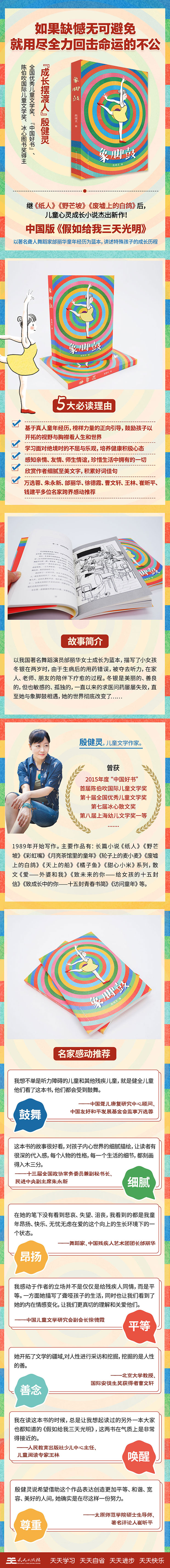 这部描写特殊群体的、现实题材的、关于爱、自信与希望的作品。 这部书以我国著名舞蹈演员邰丽华为蓝本,描写了一个叫冬银的小女孩在两岁时,由于生病后的用药错误,夺去了女孩的听力,一家人开始了艰难的求医旅程。在希望破灭以后,爸爸妈妈对冬银倾注了更多的关爱,甚至忽略了冬银的姐姐冬蓝。冬银是美丽的、善良的,但也敏感的、孤独的,直至她与象脚鼓相遇,她的世界彻底改变了…… 一个于黑暗中体味光明、于残缺中寻求完美、于平凡中创造奇迹的成长励志故事。