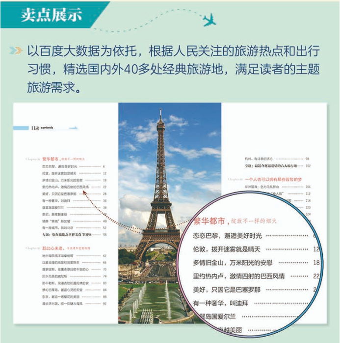 《一个人去旅行,只为遇见美好的自己》一书精彩呈现全世界适合一个人旅行的目的地,尤其针对游客兴趣点的国家给予了细致的描述,既有时尚摩登的繁华都市,也有清新脱俗的浪漫之都,还有古典温婉的文艺小镇等等,都进行了详实的介绍,方便读者们快速找到一个地方的旅游亮点,使读者更能身临其境地感受其中。 同时,每个地方都配有精彩图片,呈现地区美景,还配有游历小档案,呈现出游玩的名不虚传之地,使你可以不虚此行。在每个章节结束之后,书里还提供了几大专题,提供诸如全球范围内的八大名吃、六大极限旅游地等旅游咨询,使读者可以全方位地体会到一个人在旅游中的关键信息。