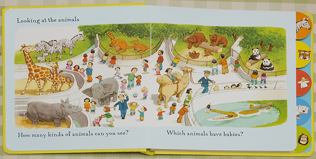 Robust tabs on the pages enable children to quickly locate their favourite scenes. Illustrated by Stephen Cartwright.