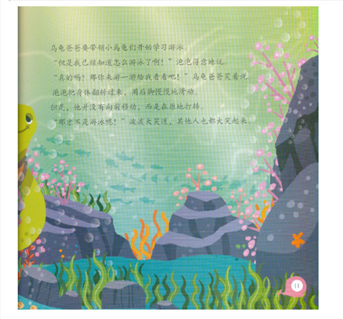 马来西亚引进版权绘本,本书的故事情节设计跌宕起伏,绘图风非常独特,精美。风靡马来西亚多年。孩子们可以跟随着泡泡龟的历险过程学习到应该怎样用爱与尊重去包容和理解他人,还能够认识和了解多种可爱的海洋动物。
