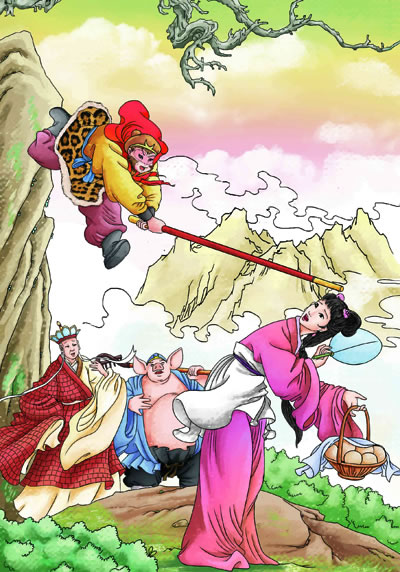 《西游记》中国古代第 一部浪漫主义长篇神魔小说,主要写孙悟空、猪八戒、沙僧三人保护唐僧西行取经,沿途遇到八十一难,一路降妖伏魔,化险为夷,*后到达西天、取得真经的故事。小说以师徒西天取经为线索,以孙悟空为主角,塑造了一个敢于反对天宫、地府统治者,爱打抱不平、勇于追求自由的英雄形象。另外,小说中的其他人物形象如猪八戒、唐僧、沙增、白骨精、铁扇公主等,也都写得个性鲜明,栩栩如生。而小说中所写的众多妖魔鬼怪,则多象征社会恶势力。作品对崇信道教、昏庸无能、荒淫残暴、不辨贤愚、专横独断之帝王,更作了无情嘲弄和批判。