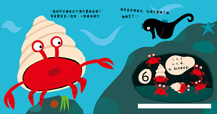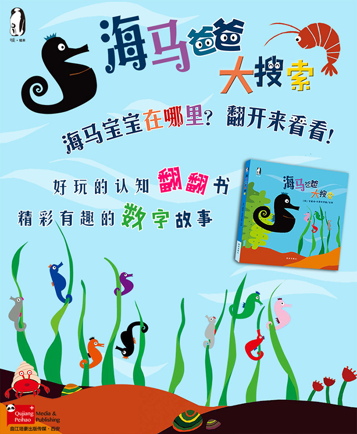《海马爸爸大搜索》内容简介:《海马爸爸大搜索》讲述海马爸爸爱他的10个海马宝宝!每晚在宝宝们入睡前,海马爸爸都要数一数。可是今天,1、2、3、4、5、6、7、8、9……咦,第10个海马宝宝去哪里了?海马爸爸急坏了!岩石后面、海蛞蝓身后、贝壳里、石头下面、洞穴里、珊瑚后面、海藻里……海马爸爸全都找遍了,最后他能找到第10只海马宝宝吗?你能帮海马爸爸找找吗?《海马爸爸大搜索》特色卖点:1.欧洲原版引进,世界知名绘本;2.幼儿趣味数字认知翻翻书,书中精心设计的翻翻页,增强了图书的趣味性和互动性,激发宝宝的阅读兴趣;3.宝宝在翻合之间,既能锻炼动手能力、激发探索欲望,又能满足宝宝的好奇心、激发想象力;4.在认知数字、学会数数的同时,还可以认识各种颜色和各种可爱的海洋动物。