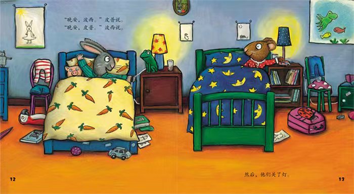 本书讲的是波西要去皮普家住一个晚上。她带了很多很多东西:睡衣、玩具、零食……他们在一起度过了特别开心的一天,玩得高兴极了。可是,临睡觉的时候,波西发现自己忘了带最心爱的青蛙玩具。没有青蛙玩具,波西怎么也睡不着……她该怎么办?皮普又会做些什么。