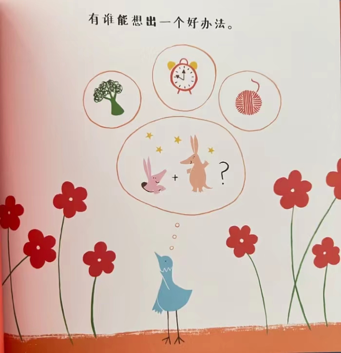 米卡和米拉住在同一个土丘下,他们都非常想交到一个好朋友。可是米卡是在白天睡觉,米拉是在晚上睡觉。他们根本没有机会见到彼此。知道这一切的小蓝鸟试了许多令人啼笑皆非的方法,还是没能让他们见面。直到有一天,一个意外让米卡和米拉相遇。两只生活平淡、没有交集的土豚终于感受到分享美好生活的乐趣。现在他们再也不孤单了。