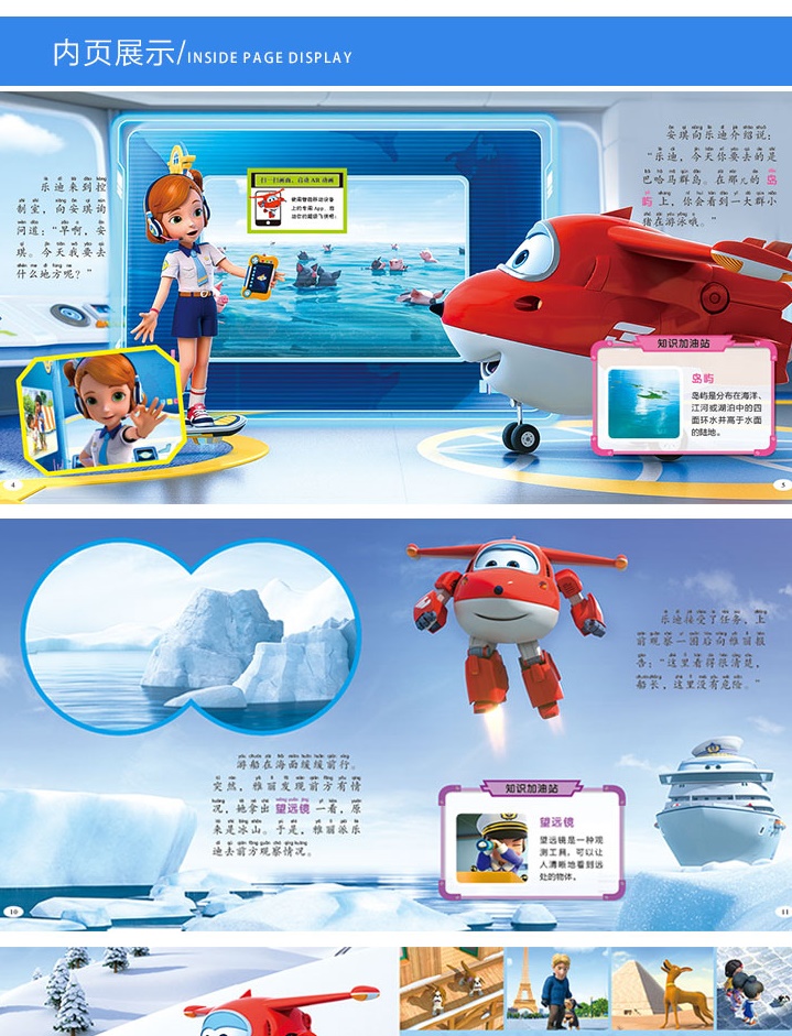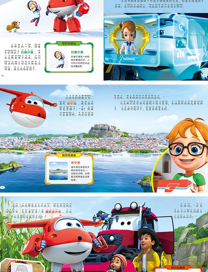 一个个生动有趣的故事,给孩子们带来了欢乐,为他们留下愉快的童年回忆,也让他们跟着超级飞侠们的脚步,看到了这个精彩的世界。有高楼林立电影业发达的香港,有神秘巨雪人出没的高原国家不丹王国,小猪在海里游泳的巴哈马群岛,古老又充满神话色彩的希腊雅典,足球和探戈一样热情的阿根廷,漂浮着冰山的海域阿拉斯加,清凉美丽的阿尔卑斯山脉,神秘壮观的秘鲁田野。