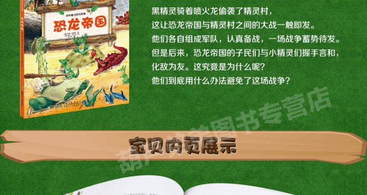 黑精灵骑着喷火龙偷袭了精灵村,这让恐龙帝国与精灵村之间的大战一触即发。他们各自组成军队,认真备战,一场战争蓄势待发。但是后来,恐龙帝国的子民们与小精灵们握手言和,化敌为友。