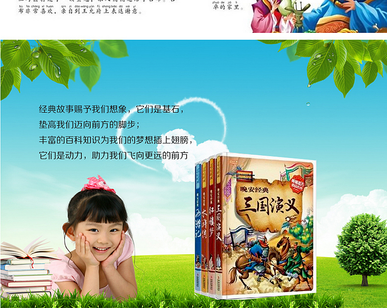 经典故事赐予我们想象,它们是基石,垫高我们迈向前方的脚步;丰富的百科知识为我们的梦想插上翅膀,它们是动力,助力我们飞向更远的前方。用精美的图片张扬自然的力量,用传神的文字解读知识的彷徨。让我们放下沉甸甸的书包,以轻松的姿态来阅读这个世界。透过图书让视野扩容,在这里,或绘制或拍摄的图片异彩纷呈,或知识或故事的文字娓娓道来,就这样缩短时与空的距离,让昨天、今天与明天衔接成一条光滑的弧线——我们在成长!