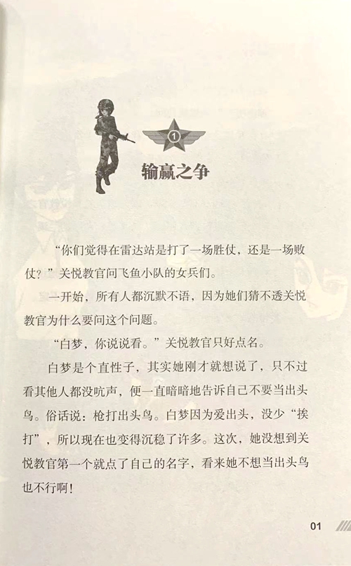 “你们觉得在雷达站是打了一场胜仗,还是一场败仗?”关悦教官问飞鱼小队的女兵们。 一开始,所有人都沉默不语,因为她们猜不透关悦教官为什么要问这个问题。 “白梦,你说说看。”关悦教官只好点名。 白梦是个直性子,其实她刚才就想说了,只不过看其他人都没吭声,便一直暗暗地告诉自己不要当出头鸟。俗话说:枪打出头鸟。白梦因为爱出头,没少“挨打”,所以现在也变得沉稳了许多。这次,她没想到关悦教官第一个就点了自己的名字,看来她不想当出头鸟也不行啊!