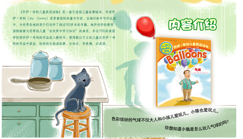 风靡全球的儿童英语读物,以简单的人物和故事,将生活中一些细小平常的东西趣味化,让孩子们在开心的欢笑声中轻松阅读,学习和培养友爱、团结、勇敢、谦虚等美德。正文全部是英文,每个故事后附阅读提示和参考译文,帮助儿童理解文中词语的用法,并且通过互动练习进一步领会和体味故事的内容及特色。 用手机扫书后封底上的二维码,可即刻聆听纯正的英文朗读。《气球》 :色彩缤纷的气球不仅大人和小孩儿爱玩儿,小猫也爱玩儿。你想知道小猫是怎么玩儿气球的吗?