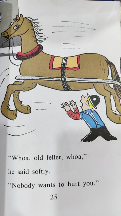 Barney is a street peddler who sells fruits and vegetables while dispensing kindness and horseback rides to the children on his route.Progress brings elevated trains to the area, resulting in Barneys horse running away before everyone adjusts to the changes. Brightly colored illustrations depict clear action. A satisfying story. BL.
