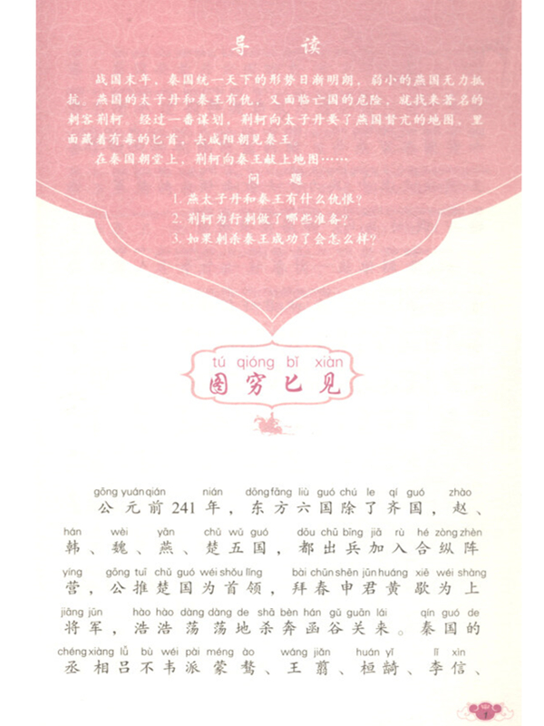 为了将林汉达先生的图书阅读面扩展到更大范围,出版社从春秋时代特别有意思的故事里,挑选了几个具有代表性的历史故事,例如《千金一笑》《鸡鸣狗盗》《狡兔三窟》《负荆请罪》《毛遂自荐》等,编辑成适合低年龄小读者的全文注音图书。每篇故事前还有导语,让小读者能更好地了解这些故事的核心内容;还有小问题,让小读者带着思考去阅读。故事后面还有各种各样的成语小题目,例如成语接龙、成语填空,图画、汉字、数字、公式和古诗猜成语。