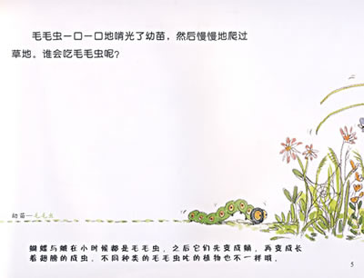 《谁吃了幼苗》是一本关于咀嚼、吞食和吮吸的书——事实上,它是一本关于“吃”的书。同时,它也介绍了一种特殊的“链条”,那就是食物链,每种生物都是这根链条上的一部分。读一读这本书,看看谁在捕食,谁被捕到,谁在吃东西,谁又被吃掉吧!