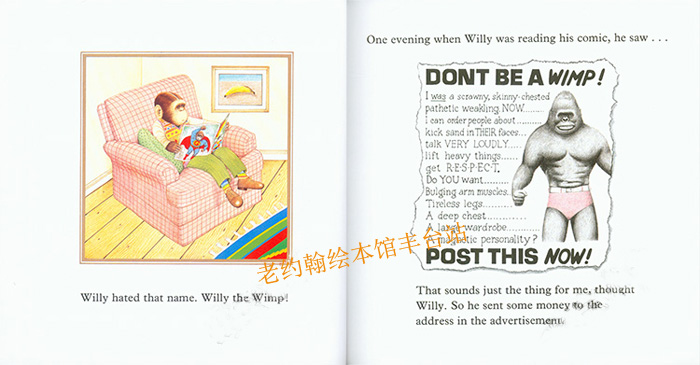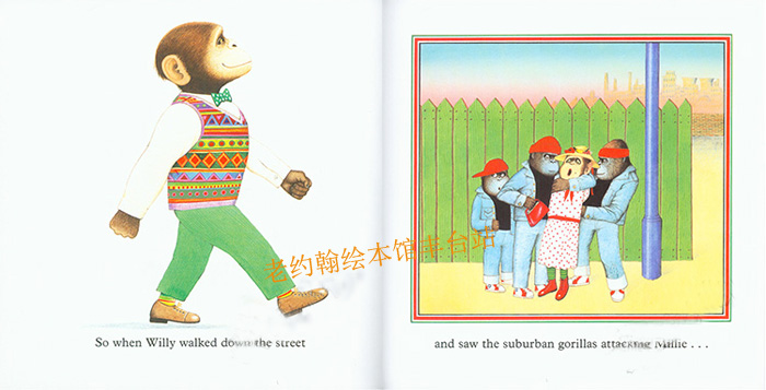 威利是一只善良的小猩猩,什么东西都不忍心伤害。一次,他出去散步,被一群小混混边打边叫他“胆小鬼威利”,威利讨厌这个外号。