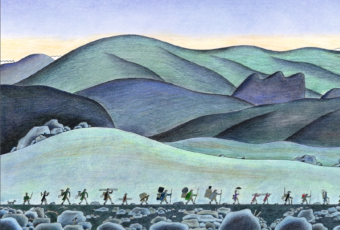 这本书通过令人惊奇的双开页大视角雪山插画向读者讲述了关于十八世纪博物学家和地质学家、现代登山运动的先行者索苏尔的真实故事。该书通过宏大的雪山和刻画精细的微小的人物形象,呈现出了自然的宏伟和人类登山者的渺小,以及人类对知识和未知领域的不懈渴望。——博洛尼亚童书奖评审团评语