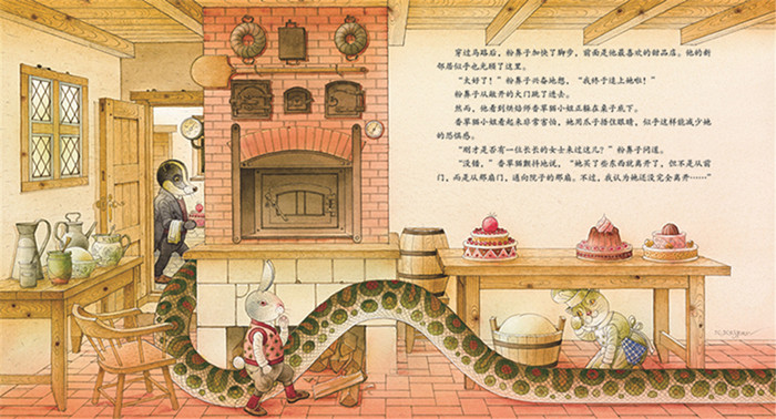 粉鼻子是一只小兔子,他非常害怕蛇,虽然其实他从未见过蛇。粉鼻子住在一栋老式建筑的三楼,一天早晨,他得知一楼搬进了了一位新邻居。于是,粉鼻子决定去拜访这位新邻居。粉鼻子敲了敲门,对方却说:“我差不多不在家。”粉鼻子很奇怪,于是,他追着这位邻居的影子,穿过了街角,路过了下水井,走过了巴士站,还经过了一家甜品店……*终,粉鼻子发现这位邻居带着一个蛋糕来到了自己家的门前。粉鼻子这才发现,这位神秘的邻居原来就是一条巨大的蛇,但她却一点儿都不可怕,反而相当迷人。于是,粉鼻子和大蛇以及蛇的尾巴一起享用了愉快的下午茶,一直聊到了深夜。