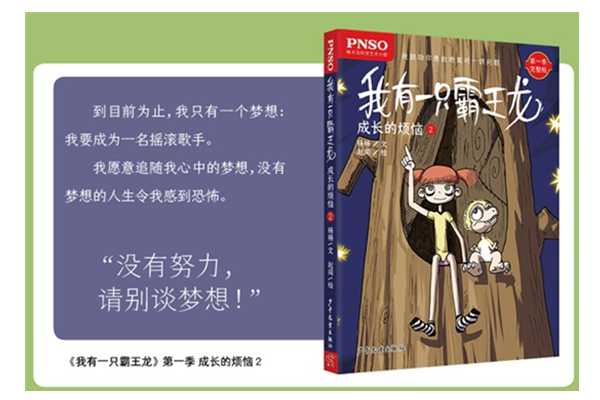 《我有一只霸王龙》第一季第一版获2015年中国童书榜年度优秀童书奖。这本心灵成长绘本小说系列的创作始于2011年,是一部关于红头发女孩和霸王龙的童话。书中虚构的独立世界被命名为乐土”,作者让这个虚构的城市承载了人类需要面对的众多问题,而解决问题的是书中的主人公一个11岁的红头发小女生关关和她的霸王龙。在这对小伙伴离奇古怪的日常生活中,困惑人类的众多问题变得轻松有趣,不再沉重,也让我们认识到,每个人都有着自己的喜欢与害怕,有着感情上的需要和被需要,以及自己快乐悲伤共存的曲曲折折的成长故事。这本书讲述了红头发小女孩关关和她的霸王龙关于他们俩的人生梦想的实现等等一系列的可爱故事。