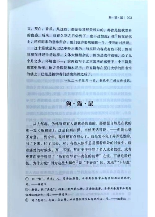 这十篇就是从记忆中抄出来的,与实际内容或有些不同,然而我现在只记得是这样。文体大概很杂乱,因为是或作或辍,经了九个月之多。环境也不一:前两篇写于北京寓所的东壁下;中三篇是流离中所作,地方是医院和木匠房;后五篇却在厦门大学的图书馆的楼上,已经是被学者们挤出集团之后了。