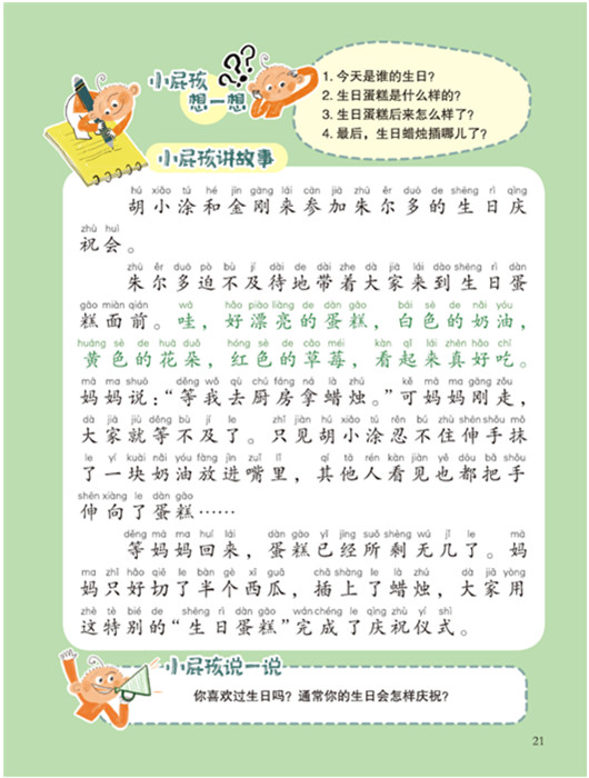 5-6岁这个年龄段的孩子,正处于语言发育和学习的黄金期,作为家长特别关心如何培养孩子的思维和表达能力,选择一套合适的读物来激发孩子的表达欲望尤为重要。这套产品就是送给幼小衔接段孩子的语言表达书。 这套产品的作者是获得冰心儿童文学新作奖等诸多奖项的著名儿童文学作家黄宇,以及她的女儿齐可依。齐可依也是本书可爱的小屁孩“朱尔多”的灵感来源。在这部书里,朱尔多和他的朋友们会带着小读者们一起开开心心地看图讲故事学表达,孩子一定会爱上这些可爱的小屁孩的。 除了趣味性和权威性,更注重这套产品的实用性,希望它能给孩子带来实实在在的帮助。 在单册主题上,本套书分3个表达主题——童话、游戏和生活,171篇有趣的故事,都是孩子喜欢和常见的,同时也涵盖了小学1-2年级语文课主要口语交际、写话、看图说话的主题,能激发孩子的阅读和表达欲望。 精选57篇童话故事,拓展孩子想象力,为小学段童话类型作文写作打基础;57篇有趣游戏故事,爆笑情节让孩子远离手机,为将来写作精彩动作瞬间打基础;5篇个生活故事,让孩子产生强烈认同感,激发阅读兴趣,为小学段各类记叙文写作打基础。 在表达能力的培养方面,用“观察—启发—阅读—思考和表达”4个步骤,破局孩子的表达困难。孩子观察图画,回答启发孩子抓细节的问题,阅读作家的精彩故事,后思考自己的经历,说出自己的故事。孩子再也不怕说话了! 比同类品更出色的是,书中有692幅精美插图,媲美绘本,高级的美感更容易激发孩子的观察兴趣,阅读和表达不再是一项无趣的作业和任务,而是成为孩子生活的一部分。 本产品是真正的自信小孩养成秘籍,让孩子爱说、会说、说得精彩!