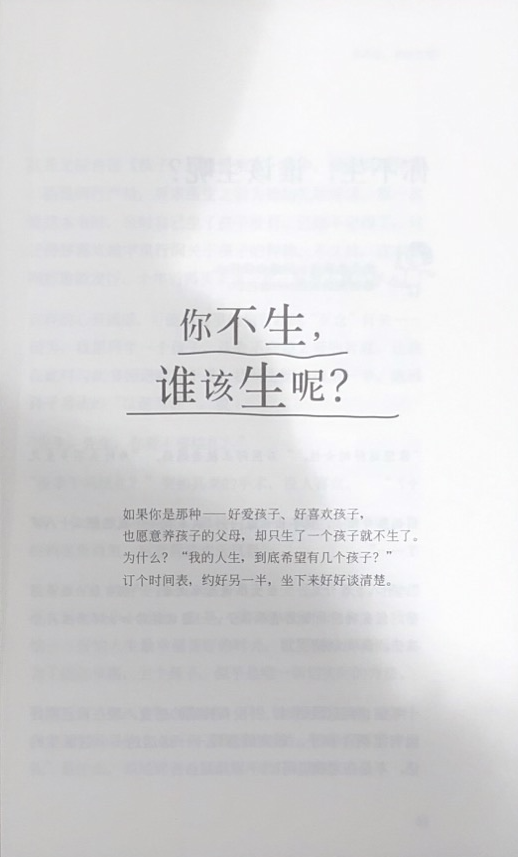 这本书是汪培珽写给那些爱孩子也愿意养孩子、却只生了一个就不生了的父母。她告诉这些父母,在生不生第二个孩子这件事情上,不要以为时间可以给你解答。在当时间给你答案的同时,可能也失去了机会。书里告诉这些父母为什么要生第二个孩子,不要因为一时的困顿而急着做出决定。