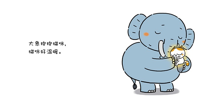 这是一本充满爱和温暖的图画书。寒冷的冬天,每个小动物都冷得发抖,大象来帮忙,用抱抱给小动物们送去温暖。可是大象也好冷呀,怎么办呢?怎么才能让大象暖和一点儿呢?被大象帮助过的小动物们一起来想办法……
