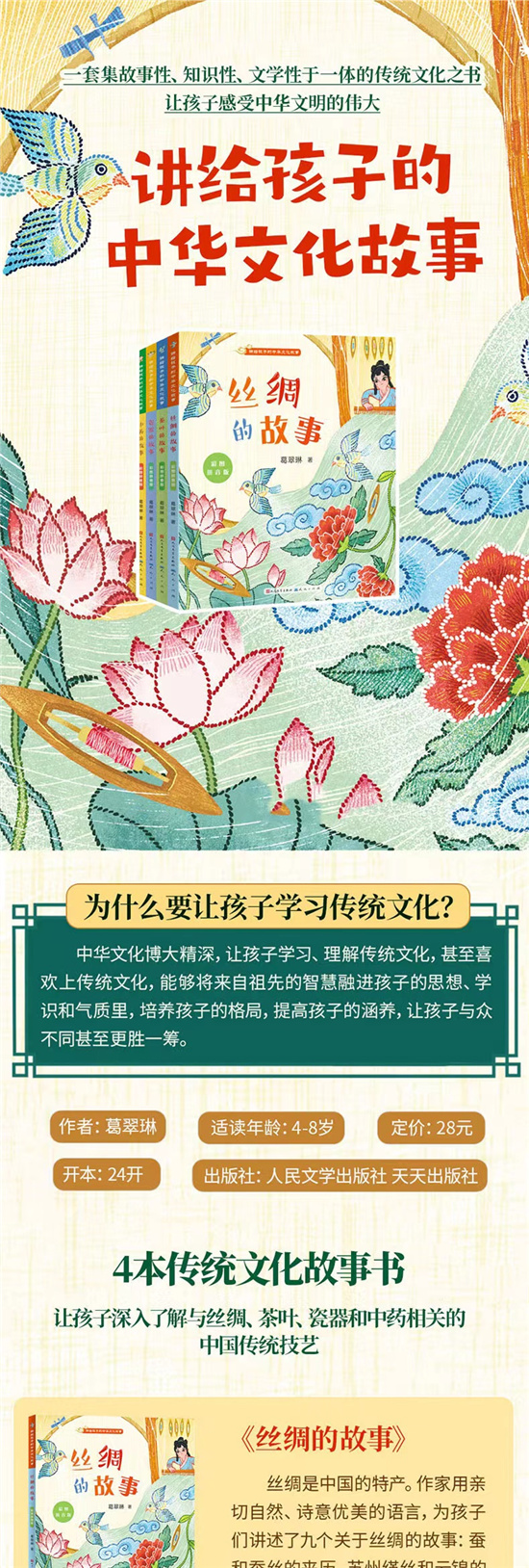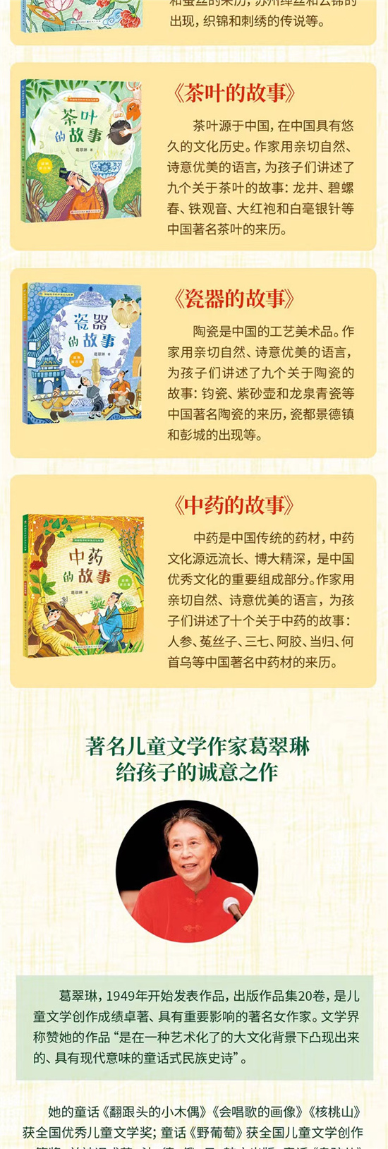 中药是中国传统的药材,中药 文化源远流长、博大精深,是中国 优秀文化的重要组成部分。作家用 亲切自然、诗意优美的语言,为孩 子们讲述了十个关于中药的故事: 人参、菟丝子、三七、阿胶、当归、 何首乌等中国著名中药材的来历。 这些故事展现了我国古代劳动人民 智慧、勤劳、真诚和善良的美德, 让孩子们深入了解中国传统技艺的 文化内涵,领略中华文明的风采, 感受中华文明的伟大。
