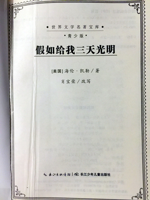 《假如给我三天光明》是美国当代著名作家海伦·凯勒的散文代表作。该书的前半部分主要写了海伦变成盲聋人后的生活,后半部分则介绍了海伦的求学生涯。同时也介绍她体会不同的丰富多彩的生活以及她的慈善活动等等。她以一个身残志坚的柔弱女子的视角,告诫身体健全的人们应珍惜生命,珍惜造物主赐予的一切。此外,本书中收录的《我的人生故事》是海伦·凯勒的自传性作品,被誉为“世界文学史上无与伦比的杰作”。在这本书中,我们可以看到:面对残酷的现实,海伦?凯勒勇敢地接受了挑战,她不仅用行动证明了人类战胜命运的勇气,还将自己所经历的痛苦和幸福记录下来,以勉励后世。